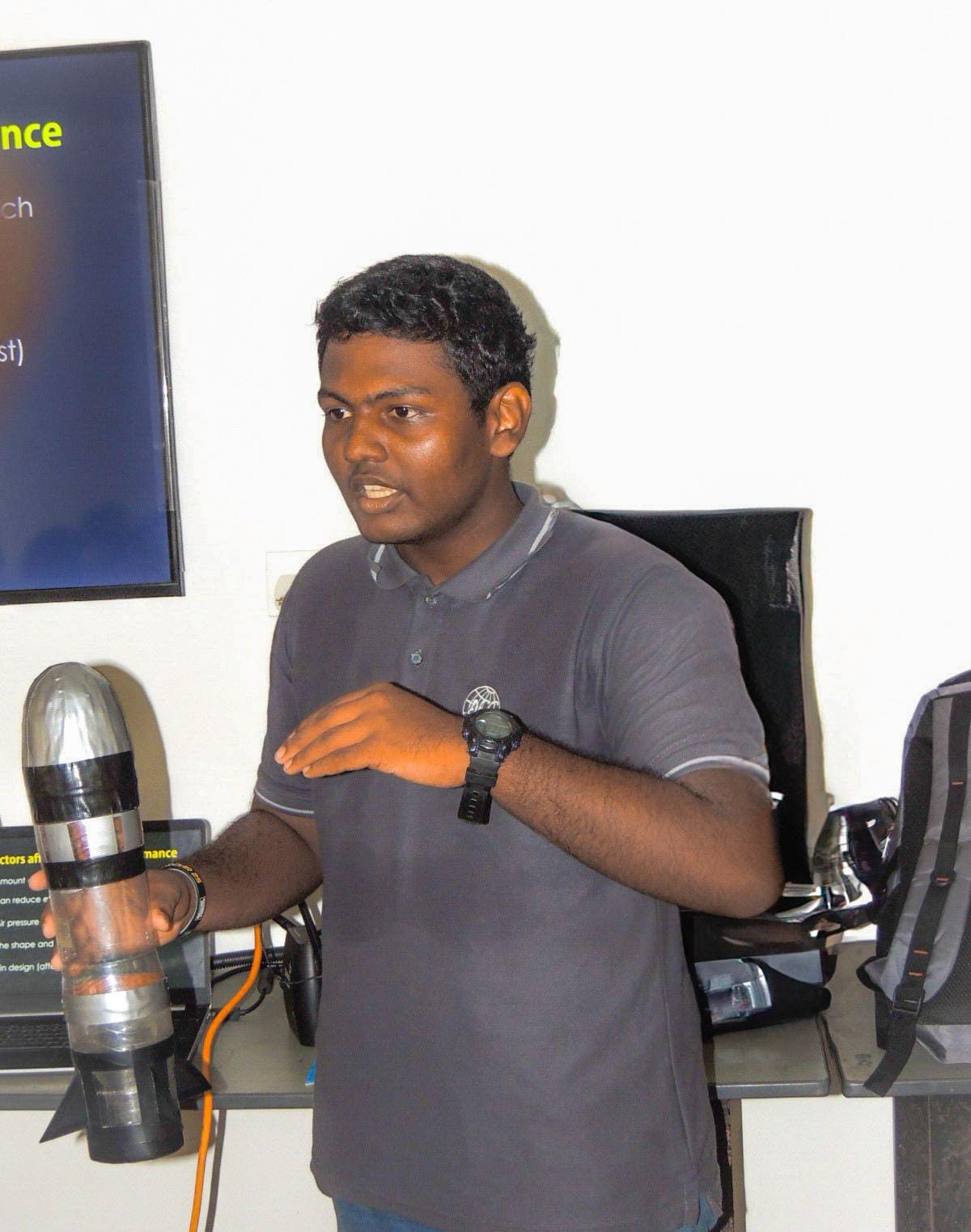 The second part of the session was conducted by Dinuwara Muthukumarana, President of the Society. Dinuwara is an Astronomy Olympiad medalist and has won multiple water rocketry competitions. He used a model to explain the main parts of a water rocket, such as the bottle body, fins, and nozzle. He also explained how the height of a water rocket’s flight depends on factors like water pressure, amount of water, angle of launch, and rocket design. During the Q&A session, both speakers answered questions and shared extra knowledge on astronomy to give students a better understanding of space science. Even though there were no real rocket launches, the workshop was a fun and educational experience. It gave students a strong foundation in basic rocket science and sparked interest in future hands-on projects.